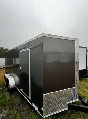 Business owners like the charcoal gray 7 by 16 enclosed trailer, and for good reason. This trailer is big enough to store things, move them, and make changes to them. The 7-foot width and 16-foot length make it flexible for carrying tools, supplies, or goods. The enclosed design keeps your things safe from the weather, so it’s a wonderful choice for organizations that work in different kinds of weather.